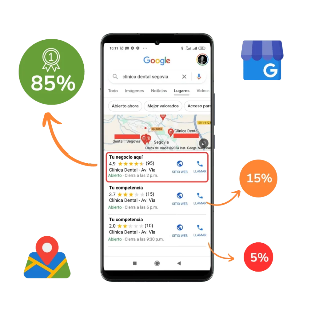 - Visibilidad optimizada en búsquedas locales con intención comercial.